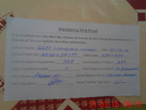 | Certified that this School was Inspected by the Undersigned MEA/DMO Today and the Information Stated Above is as Per Record. | |||||
