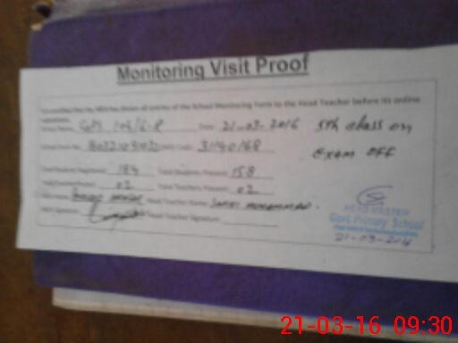 | EMIS Code: 31140168 | Name of School: GPS CHAK NO 104/6-R | |||