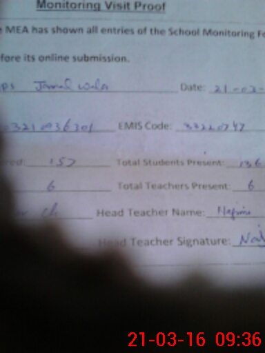 | Attendance Register | Head Teacher | MEA with School | Visit Proof |
