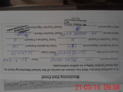 | Certified that this School was Inspected by the Undersigned MEA/DMO Today and the Information Stated Above is as Per Record. | |||||