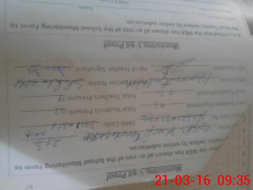 | Attendance Register | Head Teacher | MEA with School | Visit Proof |