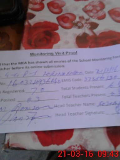 | Attendance Register | Head Teacher | MEA with School | Visit Proof |