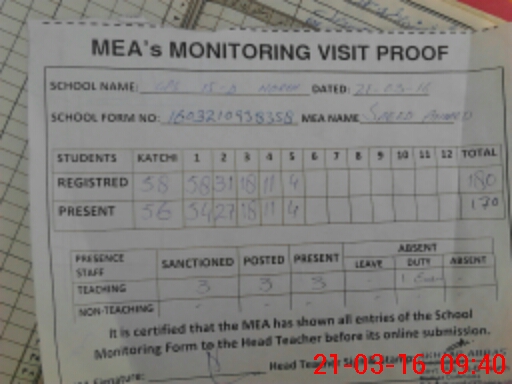| Attendance Register | Head Teacher | MEA with School | Visit Proof |