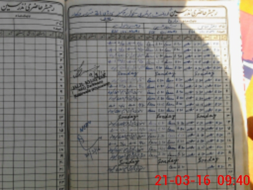 | CNIC | Full Name | Designation | R/C | Absence During Last Calender Month |