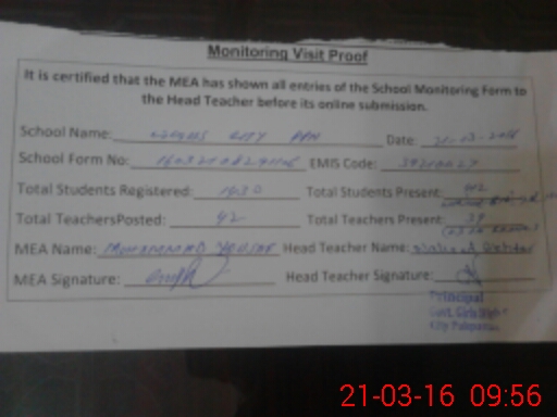 | Certified that this School was Inspected by the Undersigned MEA/DMO Today and the Information Stated Above is as Per Record. | |||||
