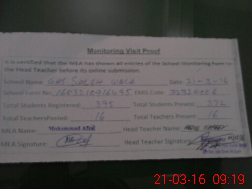 | EMIS Code: 32320006 | Name of School: GHS SALEH WALA | |||
