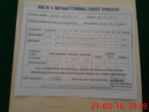 | Attendance Register | Head Teacher | MEA with School | Visit Proof |