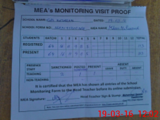 | Attendance Register | Head Teacher | MEA with School | Visit Proof |