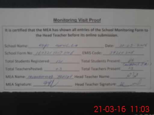 | Attendance Register | Head Teacher | MEA with School | Visit Proof |