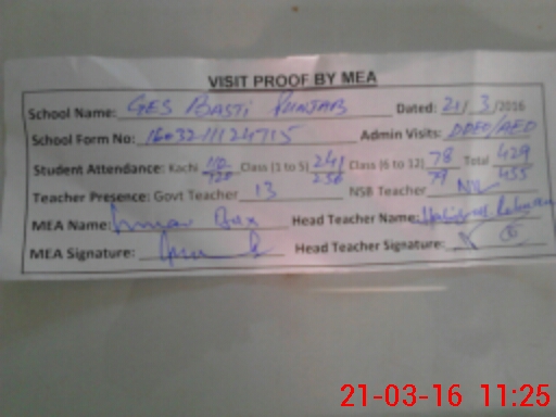 | EMIS Code: 32430011 | Name of School: GES BASTI PUNJAB | |||