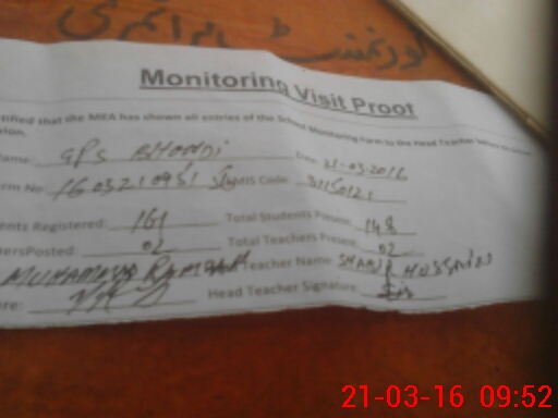 | Certified that this School was Inspected by the Undersigned MEA/DMO Today and the Information Stated Above is as Per Record. | |||||