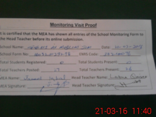 | Certified that this School was Inspected by the Undersigned MEA/DMO Today and the Information Stated Above is as Per Record. | |||||