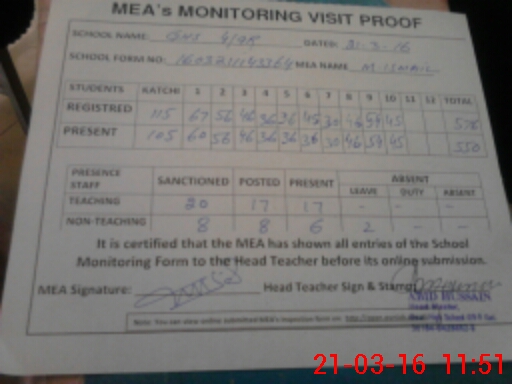 | Certified that this School was Inspected by the Undersigned MEA/DMO Today and the Information Stated Above is as Per Record. | |||||