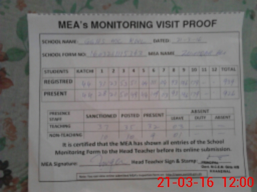 | Certified that this School was Inspected by the Undersigned MEA/DMO Today and the Information Stated Above is as Per Record. | |||||