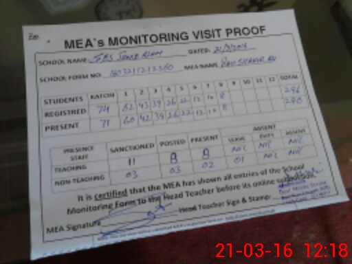 | Attendance Register | Head Teacher | MEA with School | Visit Proof |