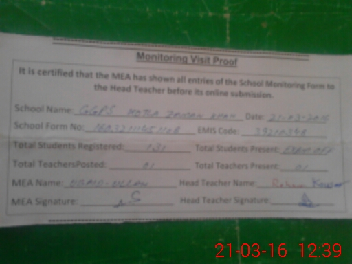 | EMIS Code: 39210348 | Name of School: GGPS KOTLA ZAMAN KHAN | |||