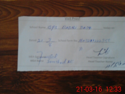 | EMIS Code: 39310253 | Name of School: GPS BADRI DAS | |||
