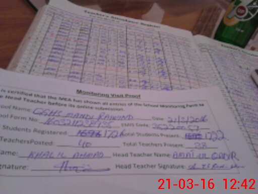 | Attendance Register | Head Teacher | MEA with School | Visit Proof |