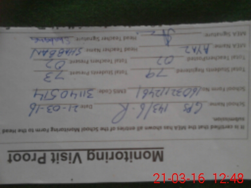 | Certified that this School was Inspected by the Undersigned MEA/DMO Today and the Information Stated Above is as Per Record. | |||||