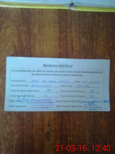 | Certified that this School was Inspected by the Undersigned MEA/DMO Today and the Information Stated Above is as Per Record. | |||||