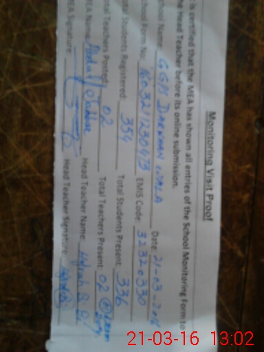 | EMIS Code: 32320330 | Name of School: GGES DIRKHAN WALA | |||