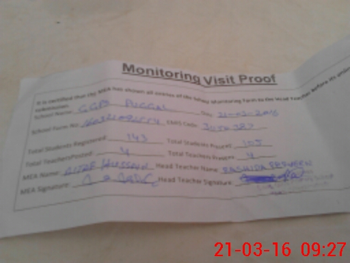 | Attendance Register | Head Teacher | MEA with School | Visit Proof |