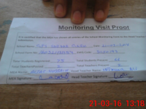 | EMIS Code: 31150193 | Name of School: GPS SARDAR GARH | |||
