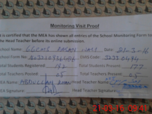 | Certified that this School was Inspected by the Undersigned MEA/DMO Today and the Information Stated Above is as Per Record. | |||||