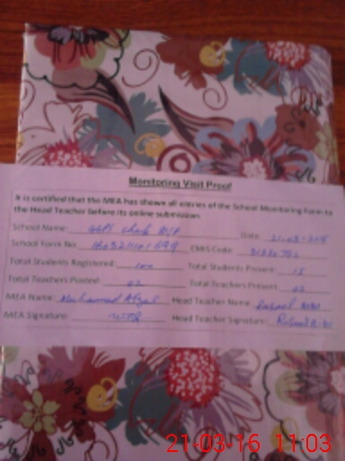 | Attendance Register | Head Teacher | MEA with School | Visit Proof |