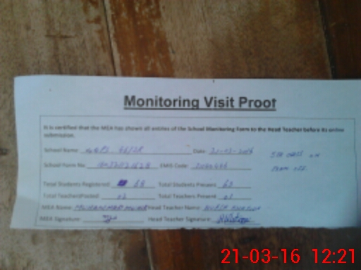 | Attendance Register | Head Teacher | MEA with School | Visit Proof |