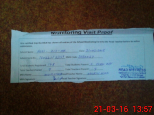 | Attendance Register | Head Teacher | MEA with School | Visit Proof |