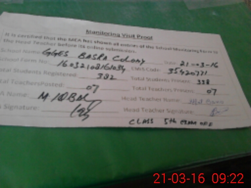 | EMIS Code: 35420771 | Name of School: GGES BASRA COLONY | |||
