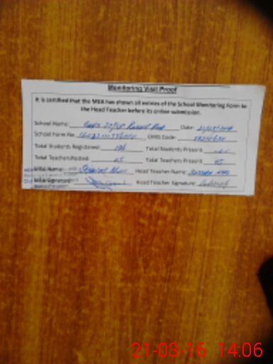 | Certified that this School was Inspected by the Undersigned MEA/DMO Today and the Information Stated Above is as Per Record. | |||||