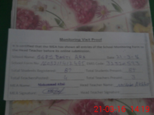 | EMIS Code: 32320593 | Name of School: GGPS BASTI ARA | |||