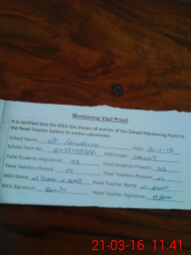 | Certified that this School was Inspected by the Undersigned MEA/DMO Today and the Information Stated Above is as Per Record. | |||||