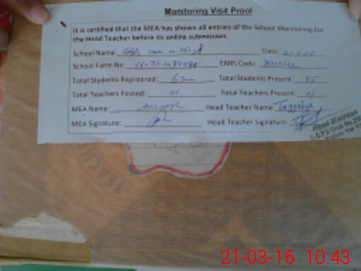 | Certified that this School was Inspected by the Undersigned MEA/DMO Today and the Information Stated Above is as Per Record. | |||||