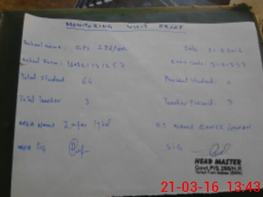 | EMIS Code: 31130237 | Name of School: GPS CHAK NO 286 HR | |||