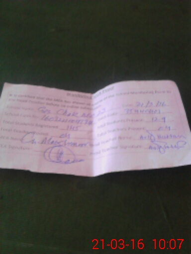 | Attendance Register | Head Teacher | MEA with School | Visit Proof |