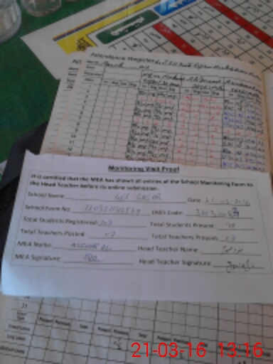 | Attendance Register | Head Teacher | MEA with School | Visit Proof |