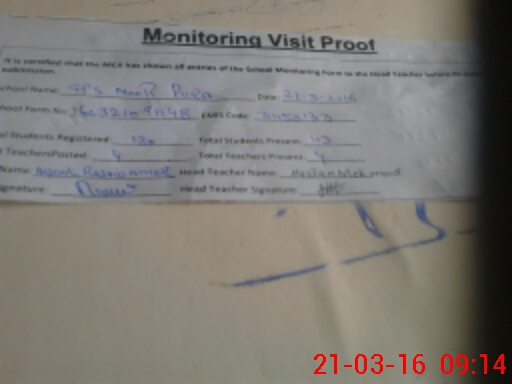| Attendance Register | Head Teacher | MEA with School | Visit Proof |