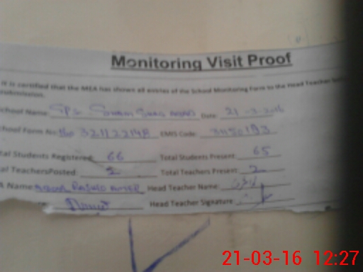 | Attendance Register | Head Teacher | MEA with School | Visit Proof |