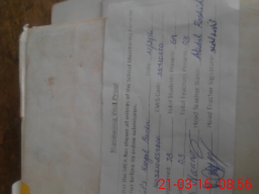 | Attendance Register | Head Teacher | MEA with School | Visit Proof |