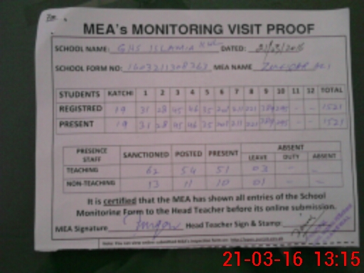 | EMIS Code: 36420003 | Name of School: GHS ISLAMIA KHANEWAL | |||