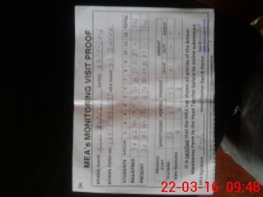 | Monitoring Date: 22-03-2016 | Start Time: 22-03-2016 08:50 AM | End Time: 22-03-2016 09:53 AM | Name of MEA: Mu**** Za**** (S**** | |