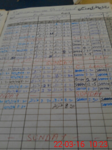 | CNIC | Full Name | Designation | R/C | Absence During Last Calender Month |