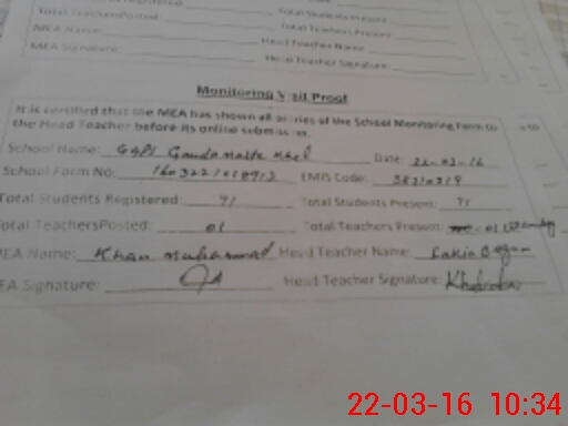 | Certified that this School was Inspected by the Undersigned MEA/DMO Today and the Information Stated Above is as Per Record. | |||||