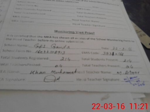 | EMIS Code: 38310168 | Name of School: GHS GANDA KHEL | |||