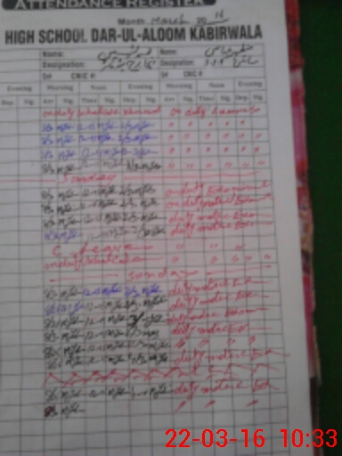 | CNIC | Full Name | Designation | R/C | Absence During Last Calender Month |
