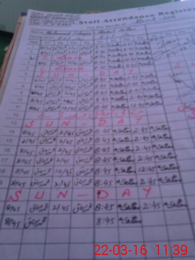 | CNIC | Full Name | Designation | R/C | Absence During Last Calender Month |