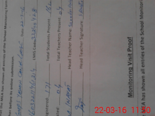 | Certified that this School was Inspected by the Undersigned MEA/DMO Today and the Information Stated Above is as Per Record. | |||||
